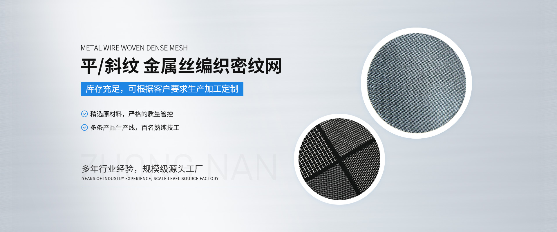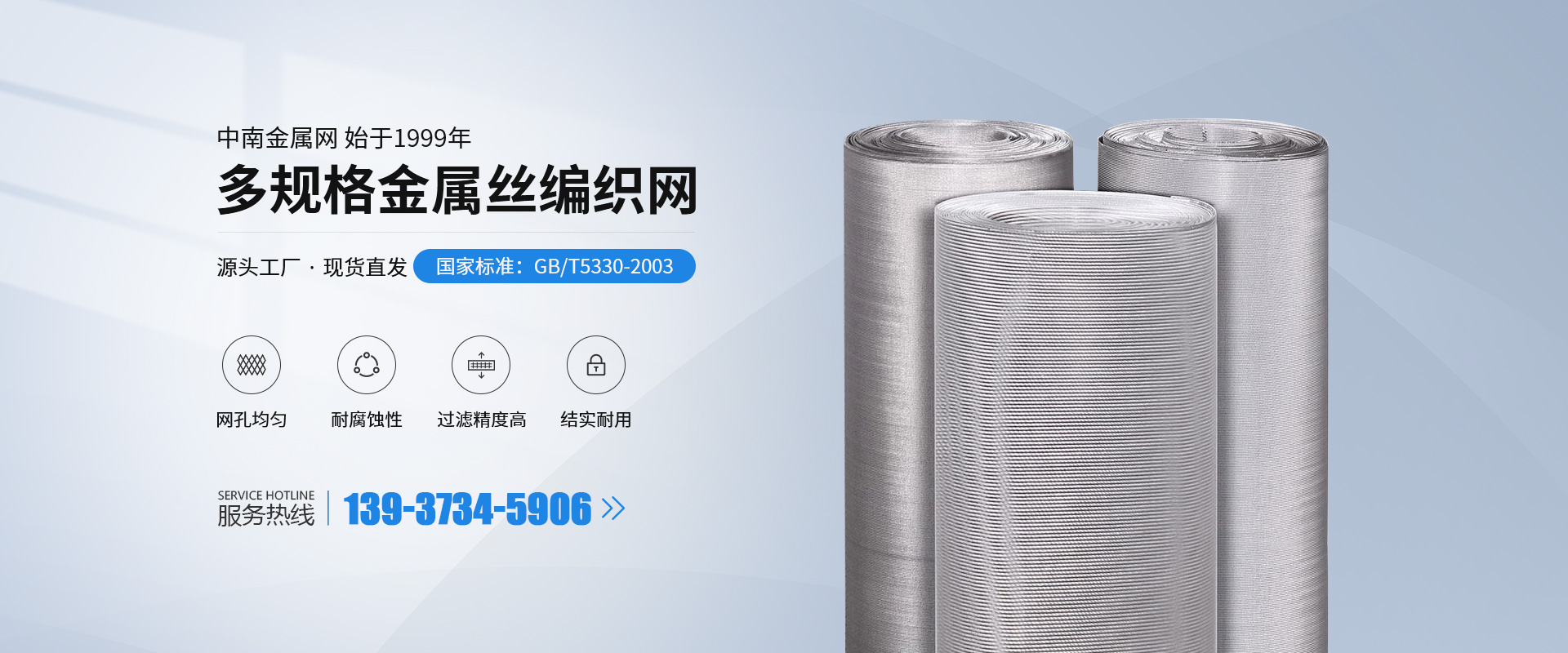 新鄉市中南金屬網有限公司成立于1999 年,公司設在河南省新鄉市。在過去的十幾年來,我們堅持以嚴格的管理措施、雄厚的技術力量、良好的工藝設施,質量上乘、信譽為上為原則,把樹立良好的企業形象為工作宗旨,歷經市場的嚴峻考驗并贏得廣大用戶的一致好評。金屬絲網編織結構形式有平紋和斜紋兩種方法,嚴格按照航空軍品標準HB1862—93和標準GB/T5330—2003標準,并等效采用國際標準ISO9044—90標準組織生產。  公司擁有生產設備和技術人員,主要生產不銹鋼篩網、磨料網、金屬絲編織方孔網、篩網、濾網 、篩分網 、過濾網、不銹鋼網、絲網、金屬絲網、金屬絲編織密紋網、特種網、不銹鋼密紋網、荷蘭網、席型網。絲網材質選用黃銅、錫青銅、不銹鋼、純鎳等。席型網規格7/44目—500/3500目,方孔網規格1/2目—500目,網孔25mm—0.028mm,產品廣泛用于機械、化工、化纖、石油、醫藥、橡膠、濾芯、固體果粒篩分、流體過濾以及裝飾、防塵、骨架支撐等。  我們以“視質量為生命、以信譽求生存、以科技促發展、以優*產品為客戶服務”的經營理念,真誠的希望與各界人士攜手并進,共創輝煌!